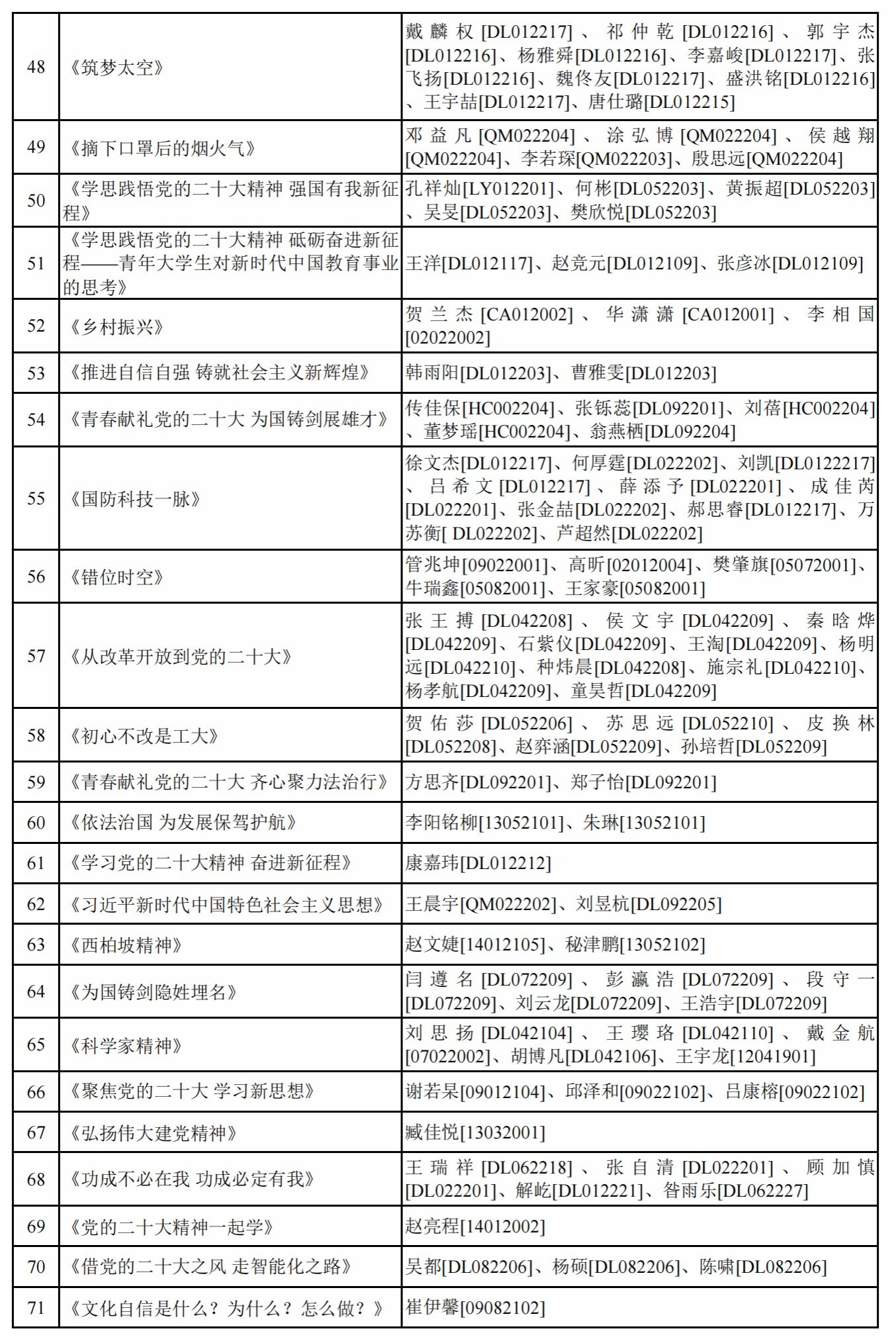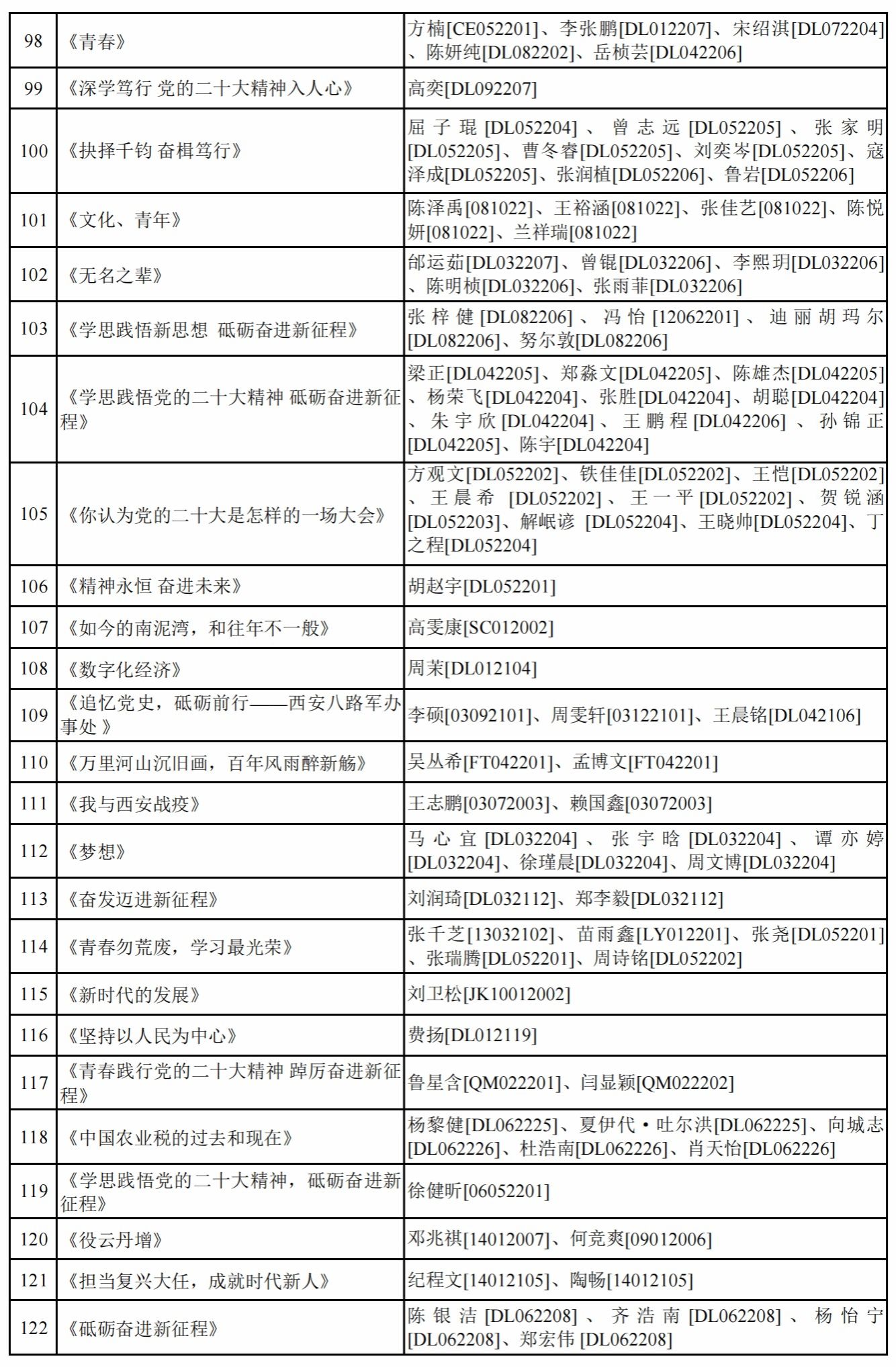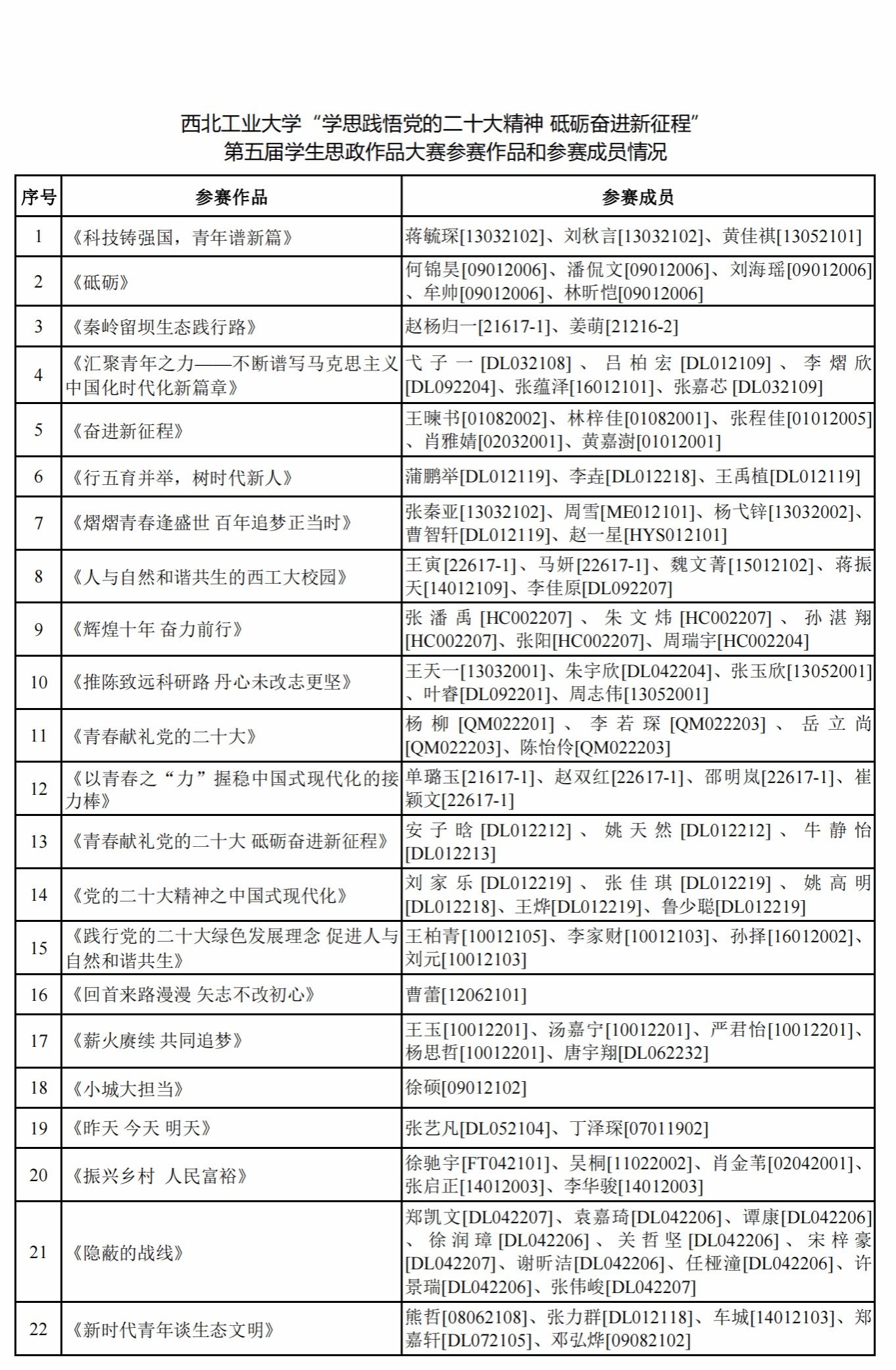 面向全校学生开展“学思践悟党的二十大精神 砥砺奋进新征程”第五届学生思政作品大赛。现将参赛作品和参赛成员予以公示。公示期间如有问题请向小说h