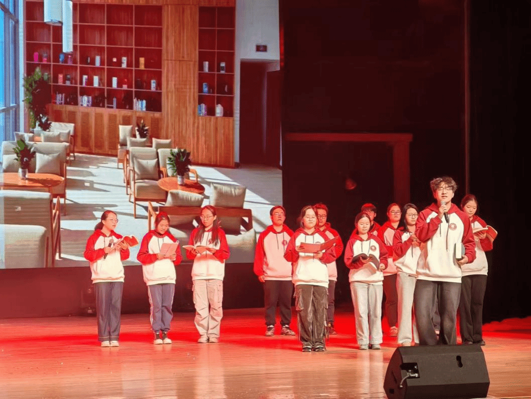 当《我爱你中国》的旋律缓缓响起,这份跨越百年的传承与担当,深深打动了每一位观众。同学们歌声嘹亮,情感真挚。整个表演环节衔接流畅,情感层层递进,极具感染力,充分体现了班级的深厚凝聚力与强烈的爱国荣校情怀。