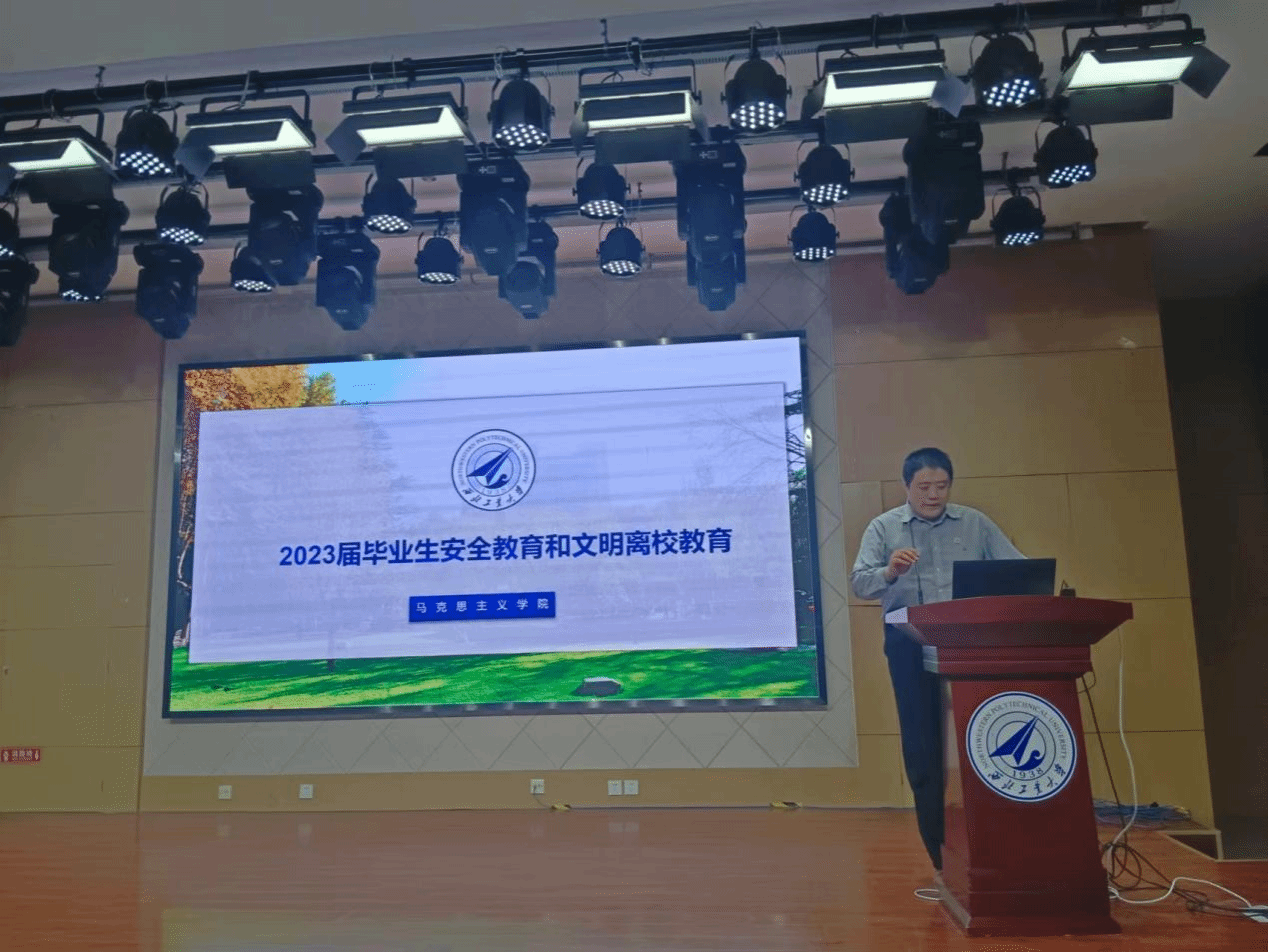 会议伊始,李刚老师对毕业生进行了离校安全教育。谈到毕业生在离校前要注意聚餐时安全、出行安全、财产安全等方面,学院将持续开展全面的安全大检查,对于有困难的学生给予关心帮助,确保及时发现、彻底消除安全隐患,同时提醒毕业生做好宿舍清洁,做到安全离校、文明离校。