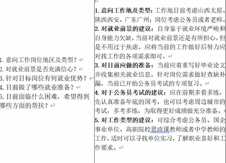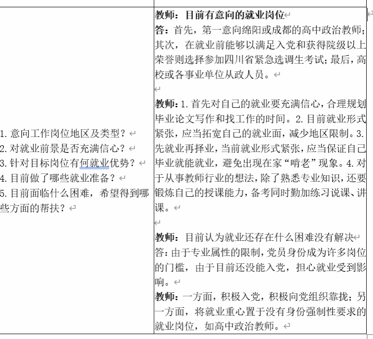 研职有方,岗位“精准推”。毕业生和帮扶教师座谈结束后,辅导员收集了每个学生的求职意向,发挥“宣传员”作用,采取“一人一策”,并建立微信群,依托全媒体平台,及时筛选、整合“国家24365大学生就业服务平台”、“小说h