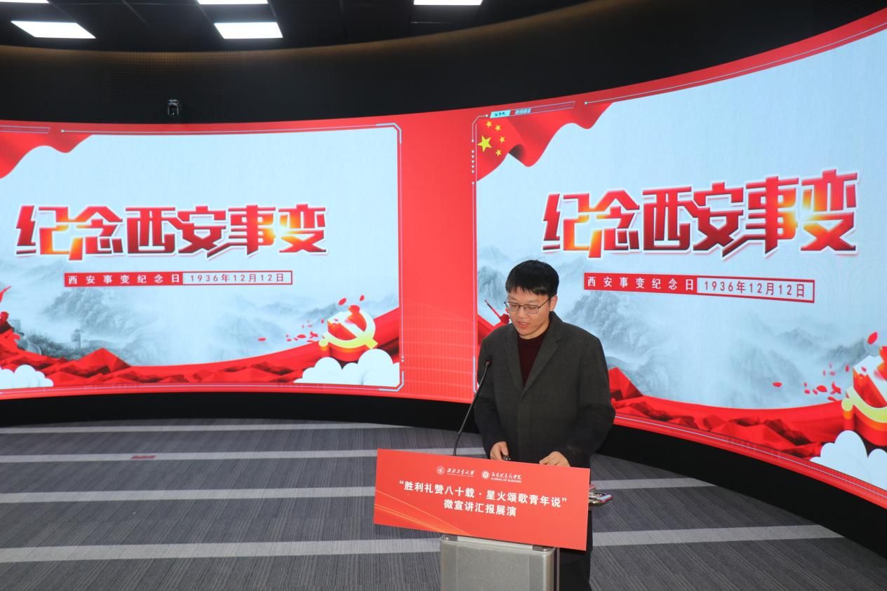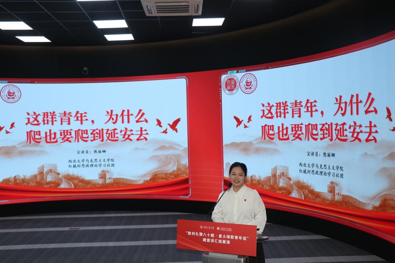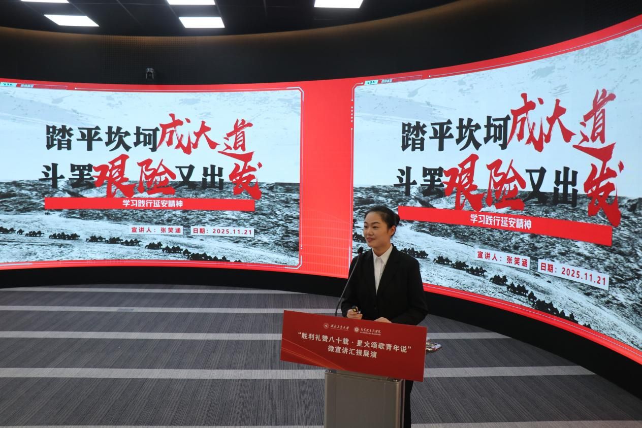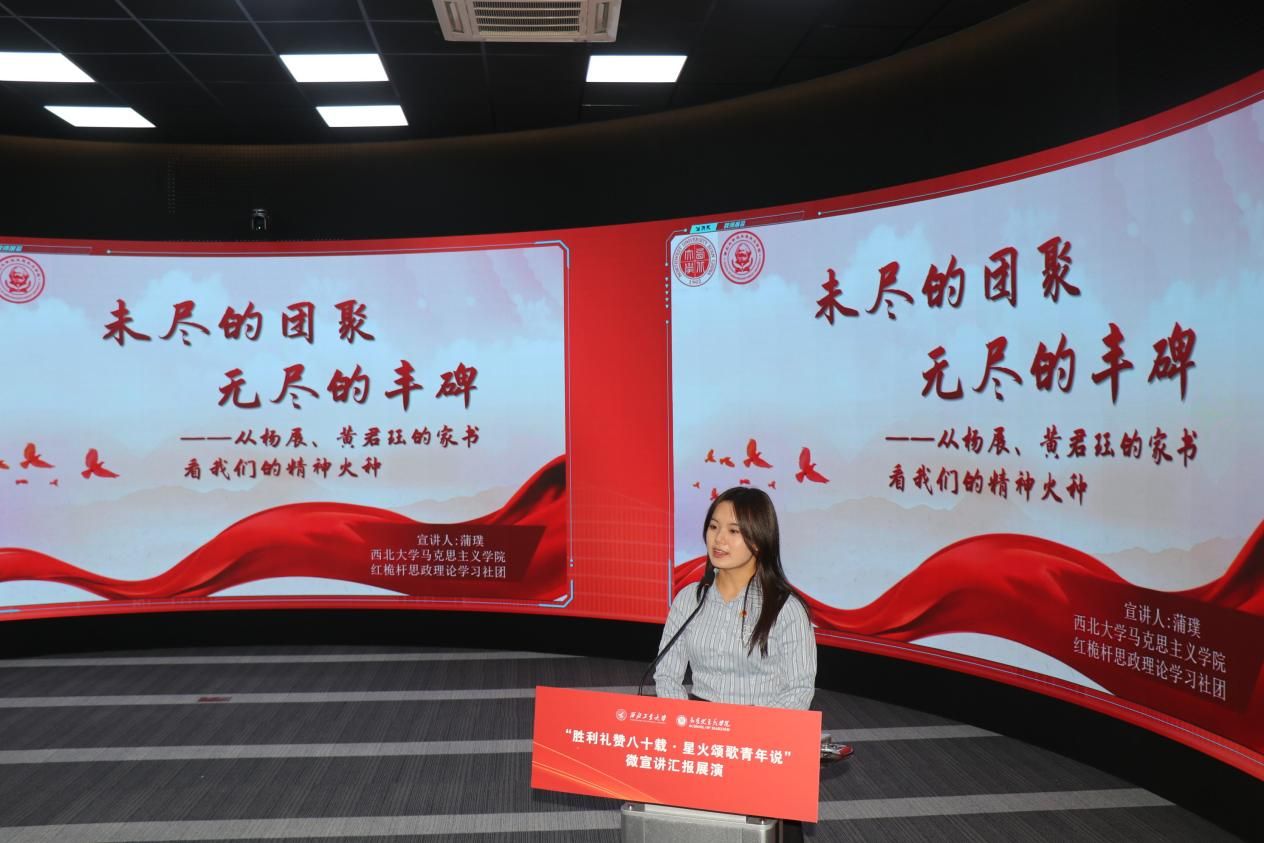 八校汇报展演分为上、下半场有序开展。18位选手紧扣抗战精神主题,或讲述烽火岁月里的红色家书故事,或解读延安精神的时代内涵,或追溯西安事变的历史意义,或聚焦东北抗联精神凝聚复兴力量的深刻阐释,诠释青年担当的深情表达。