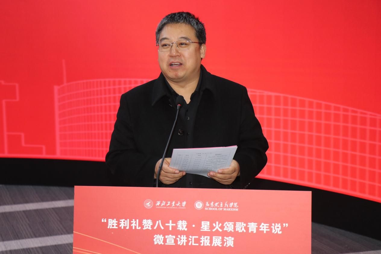 党委副书记耿云辉向到场的各校嘉宾与师生表示诚挚欢迎,阐明本次微宣讲展演以抗战胜利八十周年为契机,搭建校际交流平台、培育青年理论宣讲人才的核心初衷。