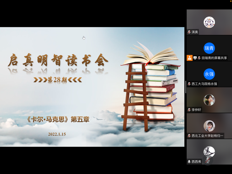张云龙教授、青年教师杨永强、王换和吕天择参加本次读书会,西北农林科技大学高耀芳老师受邀与同学们一起交流学习,读书会由硕士生田瑞青主持。