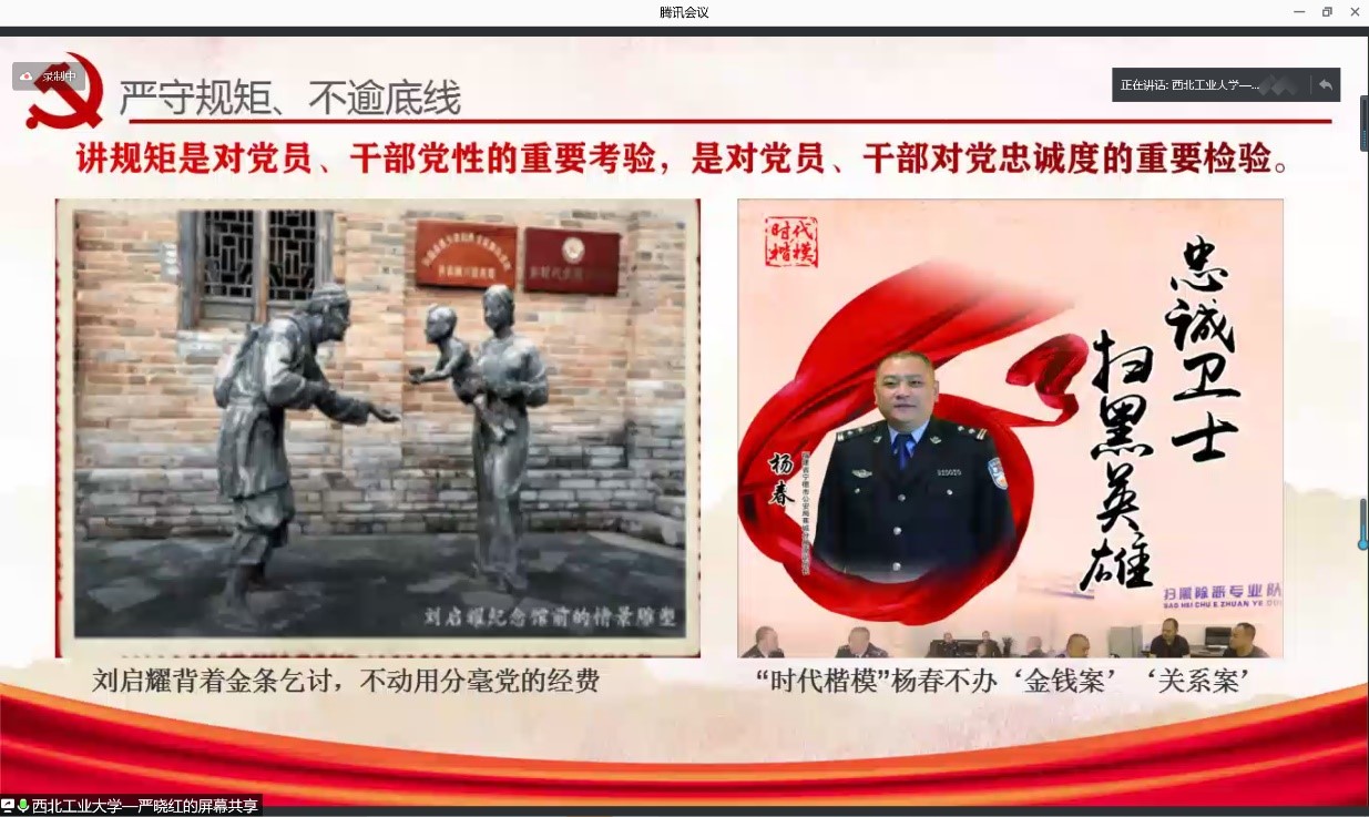 硕士生王曦宇同学。她从四个方面展开:第一,内容概要。习近平总书记的重要讲话指出新时代党员干部要提高的七种能力,并提出了新时代对党员干部的四大要求,一是党员干部要坚定理想信念,这个理想信念就是马克思主义信仰、共产主义远大理想、中国特色社会主义共同理想;二是一切从实际出发,这一要求是我们想问题、做决策、办事情的出发点和落脚点;三是党员干部要敢于担当,干事担事,是干部的职责所在,也是价值所在;四是党员干部要坚持原则,坚持原则是共产党人的重要品格,是衡量一个干部是否称职的重要标准。其次,针对每个部分,阐述了具体内容,让大家进一步理解讲话的主要内容和扩展意义。第二,研究综述。分别围绕两大层面进行了研究综述。第一层面,围绕讲话重大意义和精神实质展开热议;第二层面,围绕讲话内容展开研究综述,相继从习近平坚定理想信念、习近平强化政治意识理念两个方面论述。第三,时代价值。深入理解和把握讲话内容后,可以从四个方面入手探讨时代价值。一是坚定理想信念,把坚定理想信念与对党忠诚联系起来;二是坚持一切从实际出发,党员干部要脚踏实地,以事实为依据;三是坚定政治意识,加强理论知识的学习,学习与本职工作相关的新知识新技能,不断完善履职尽责必备的知识体系;四是要敢于担当,以实践出真知,提高党性修养,砥砺政治品格,锤炼过硬本领,以忠诚干净担当的实际行动,在全面建设社会主义现代化国家新征程中奋勇争先、建功立业。最后,研究拓展。在新时期,如何更好的落实习近平同志对于中青年党员干部提出的几点要求?有待同学们进行思考。