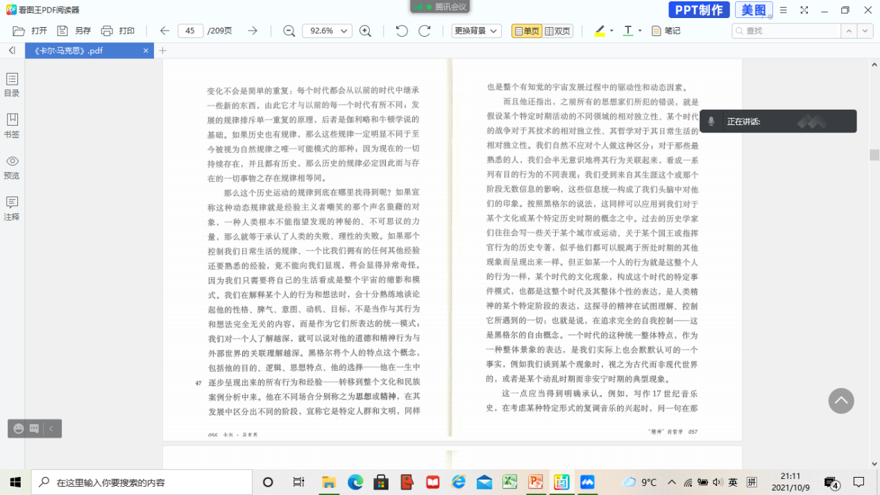 2021年10月9日,启真明智读书会以线上会议的形式顺利举行,这是本学期第二次举办启真明智读书会。本次读书会阅读内容为以赛亚·伯林所著《卡尔·马克思:生平与环境》的第三章部分内容,小说h