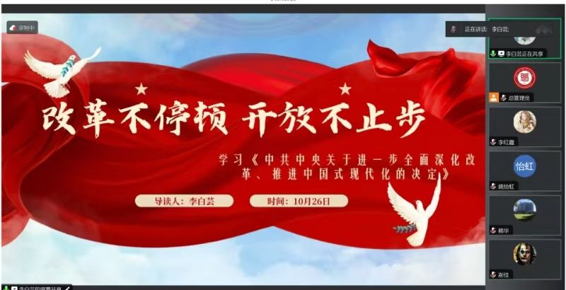 习近平新时代中国特色社会主义思想学习读书会第四十九期活动以“党的二十届三中全会《中共中央关于进一步全面深化改革、推进中国式现代化的决定》”为主题进行学习研讨。本次读书会由小说h