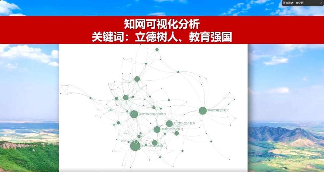 总师育人文化,展开分析了怎么落实立德树人根本任务;之后,他运用知网可视化分析对教育强国相关论文与选题进行了分析,还为我们提供了教育强国相关学术研讨会的一些信息,既为同学们提供了宝贵的学术视角,也使同学们能够更深入地了解当前的热点方向。