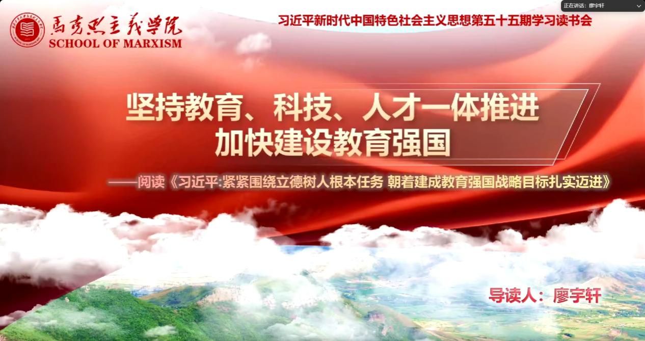 习近平新时代中国特色社会主义思想学习读书小组第五十五期活动以《习近平:紧紧围绕立德树人根本任务 朝着建成教育强国战略目标扎实迈进》为主题进行学习研讨。本次读书会由小说h