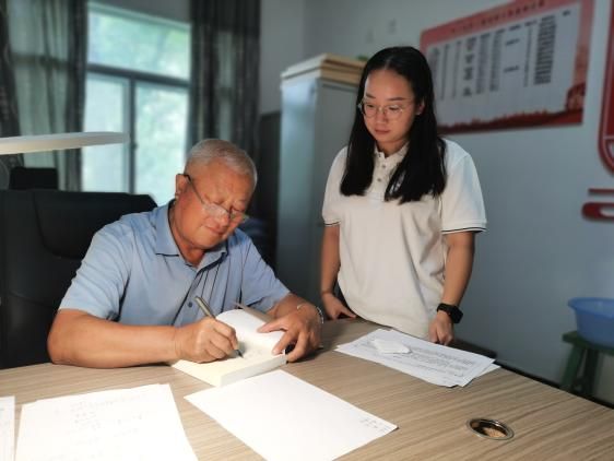 来到高西沟村的第一站,实践队员与村支书姜良彪同志进行座谈。座谈中实践队员了解高西沟人如何通过不断治理实践,实现生态治理和生产水平的高质量发展。姜良彪同志讲道:“实践证明,不能跟老天爷对着干,更不能想当然,要在尊重自然、顺应自然的基础上,探索系统的治理办法。”自新中国成立以来,高西沟村先后产生四任党支部班子,带领高西沟村人在长期实践中总结出黄土高原水土修复与保持的宝贵经验,有效遏制当地水土流失,并在实践发展中不断优化与改良。如今农林牧全面协调发展的模式,使高西沟村实现生态效益、经济效益、社会效益同步提升,成为一颗“陕北高原的明珠”。姜良彪同志为实践队员赠送《聚焦高西沟》《高西沟学习资料》等图书,并于书籍扉页签名并书写寄语。