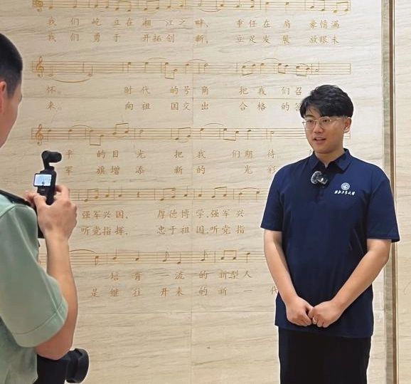 李世蓁、张淼煜赴长沙参与中国人民解放军国防科技大学2025年马克思主义学员论坛,在“大力传承弘扬‘哈军工’精神”八校学子联合演讲中铿锵发声,并接受国防科技大学电视台以及湖南教育电视台的采访。