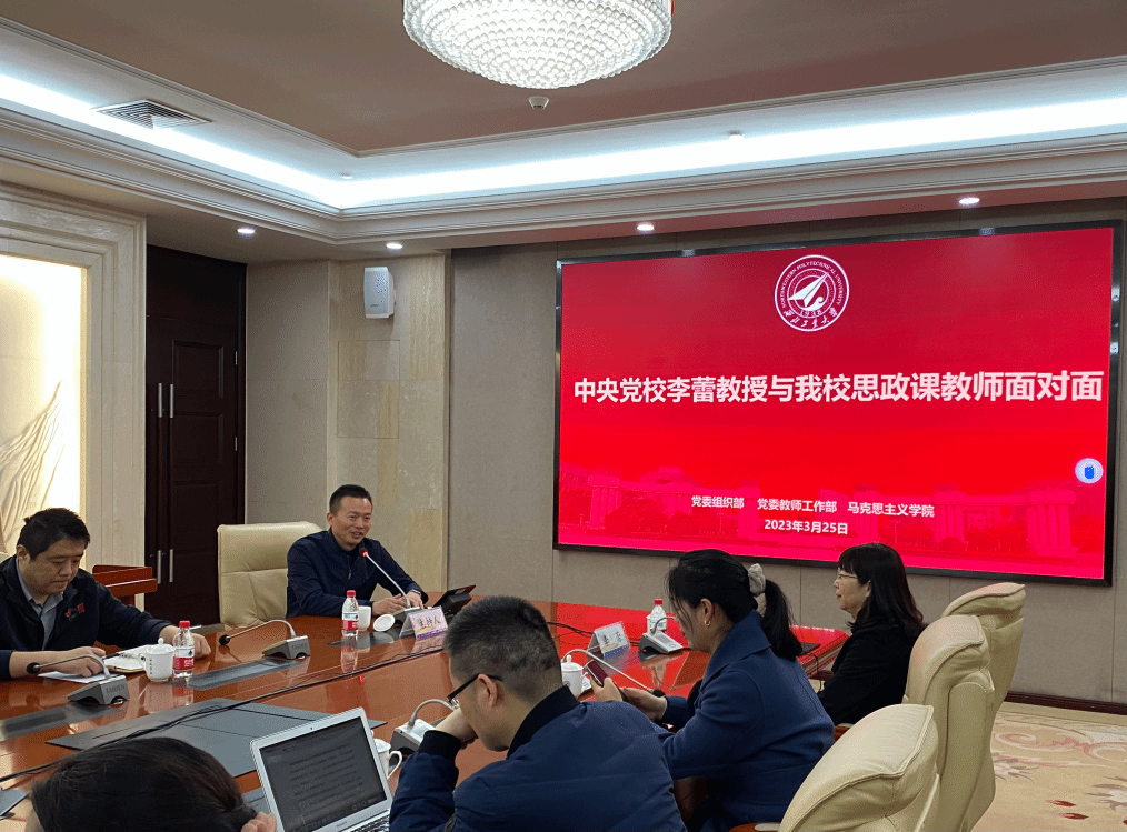 3月25日上午,中央党校李蕾教授与小说h 思政课教师面对面活动在友谊校区国二会议室召开。本次座谈会在学校党委组织部、党委教师工作部的大力支持下,邀请到中央党校经济学教研部教授、中央党校创新工程执行专家、中央党校经济学部科研秘书,省部级干部培训班主讲教师李蕾教授,同小说h 思政课教师进行交流座谈。小说h 思政课教师参与座谈会,会议由小说h 党委副书记(主持工作)蒲传新主持。