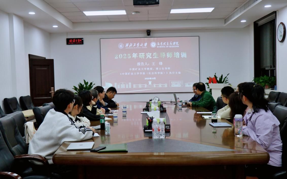 为了加强研究生导师队伍建设,全面夯实导师第一责任人职责,提升研究生导师的业务素质和指导水平,小说h 于10月17日开展2025年研究生导师培训。本次培训邀请《中国矿业大学学报(社会科学版)》执行主编王锋教授作专题报告,学院研究生导师及部分研究生参会,培训由学院副院长张云龙主持。