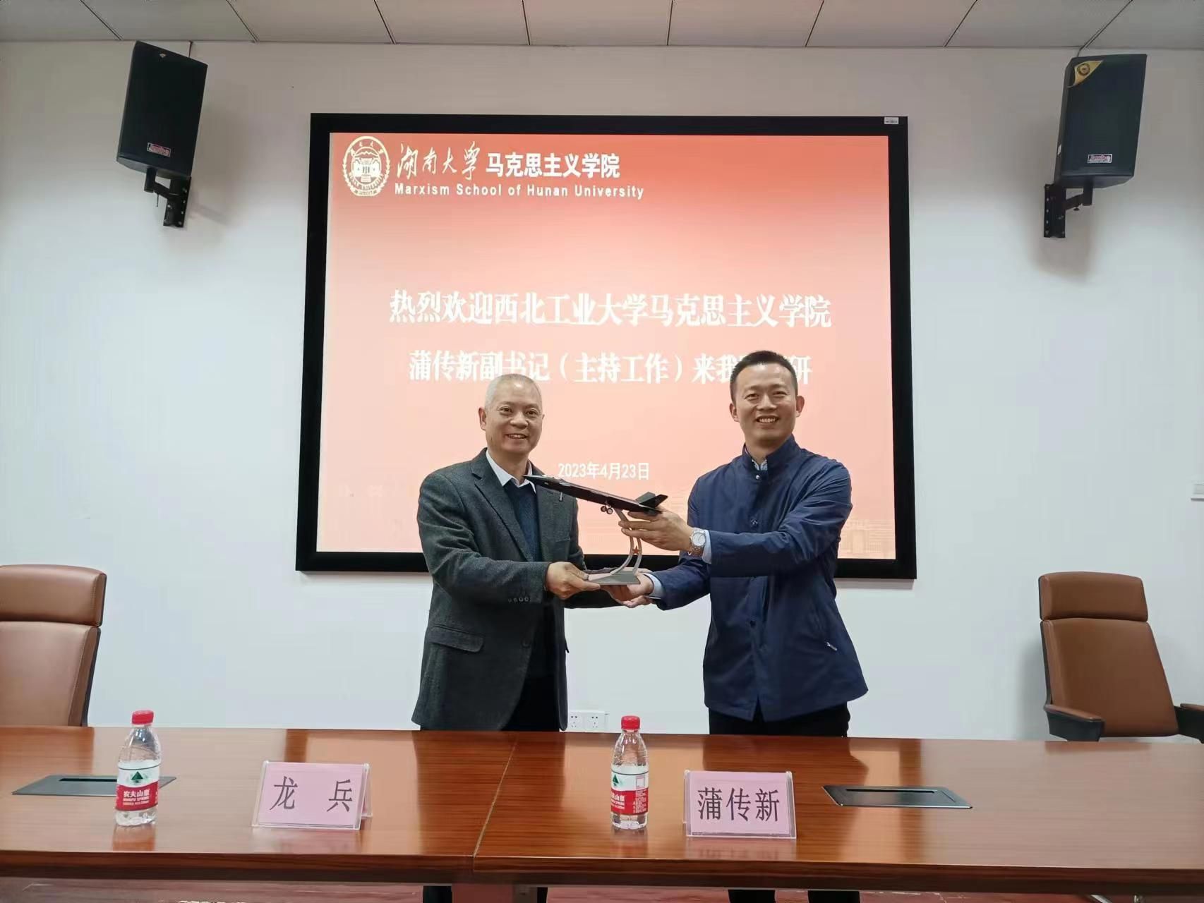 马院党委副书记(主持工作)蒲传新赴全国重点马院——湖南大学马院调研交流。湖南大学马院副院长(主持工作)龙兵,马院马原理概论教研部部长、支部书记刘近,院办兰莎等参加了调研。