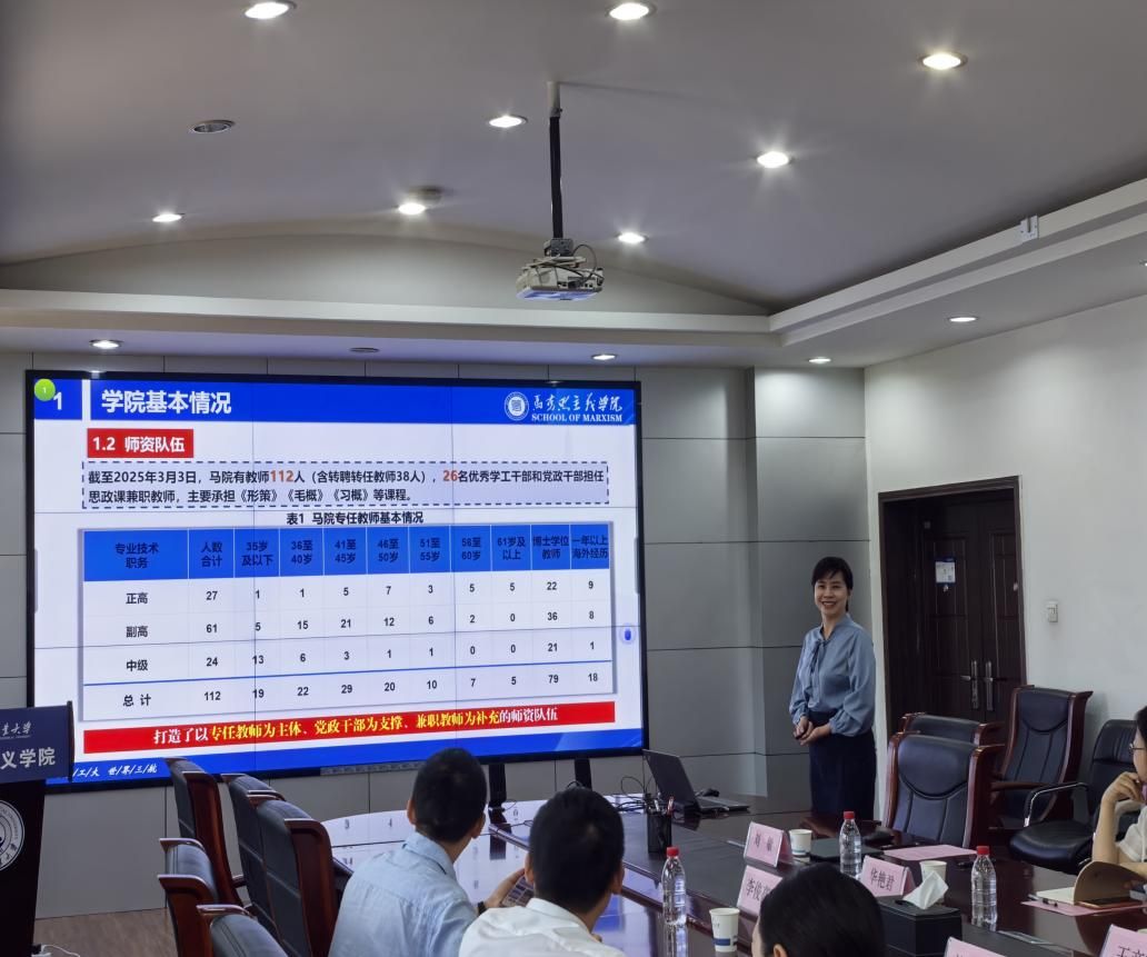 贺苗在会上汇报了学院学科建设、师资与人才队伍建设、科研成果情况,重点介绍了学院的思政课建设情况。