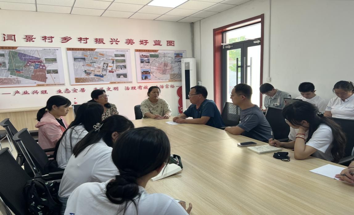 随后,实践队到闫景村党群服务中心与村干部进行了深入交流。闫景村是李家大院“善文化”发源地,近年来,村庄不但依托李家大院资源优势实现了文化振兴,而且统筹兼顾,同步推动数字振兴、产业振兴等多方面振兴,不断绘就闫喜村美好乡村之景。实践队员们在访谈中了解到,近年来,闫景村坚持以“景村联动、共享共荣”的理念开展文化振兴工作,被列为了第五批历史文化名村。如今,闫景村依托李家大院资源优势悉力整合构建乡村资源,并借助“大学生免费游”等活动不断强化当地知名度和美誉度,达成了富村富民的目标。在走访调研过程中,实践队员们切实认识到了文化振兴是是乡村振兴的“魂”,是乡村振兴的重要保障,只有坚持以文化振兴赋能乡村振兴,才能走好振兴之路的每一步。