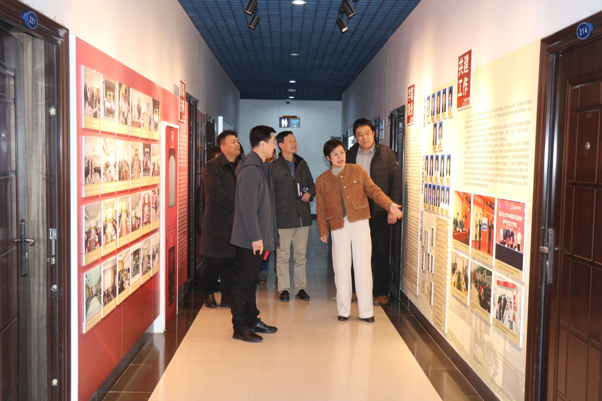 梁院长一行在学院教师陪同下参观了学院楼宇文化,并在学院党建VR活动室进行了红色之旅VR全景漫游体验和互动交流。双方表示要进一步加强合作交流,在人才共育、学科建设、平台建设等方面互相学习借鉴,实现资源共建共享。