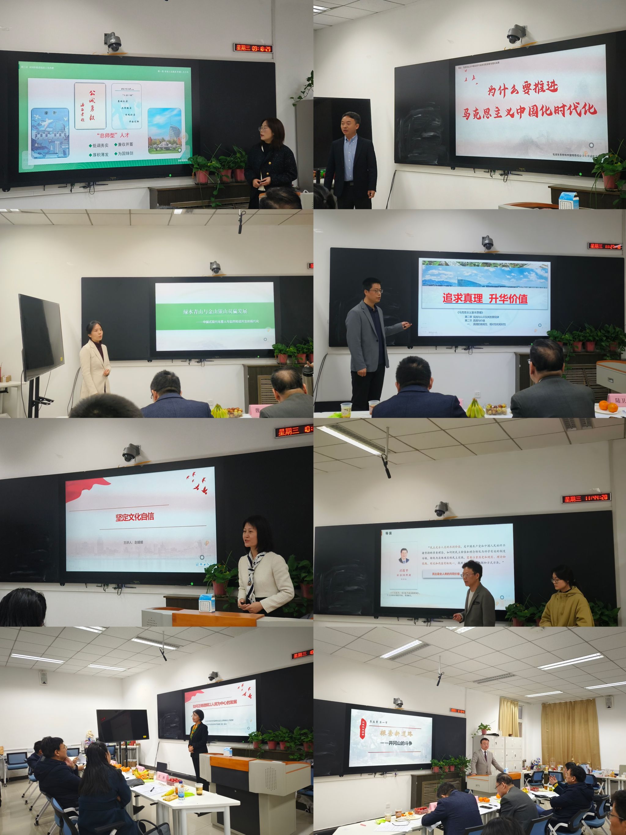 本次比赛共有七位教师及一个优秀团队(包括一名指导教师和一名学生)参赛,参赛教师狄美琳、张丽丽、赵媛媛、宁殿霞、赵波、张起梁、高红波和优秀学生代表单璐玉同学及房小捷老师依次进行了课程展示。随后,与会专家结合比赛课程对各位参赛教师进行了细致点评讲解,从整体框架结构、课程学理性、讲解重点安排及课程起承转合等内容构造,到课程展示过程中的表情状态、口语表达、板书规范等动作细节都给出了专业且详细的指导意见。